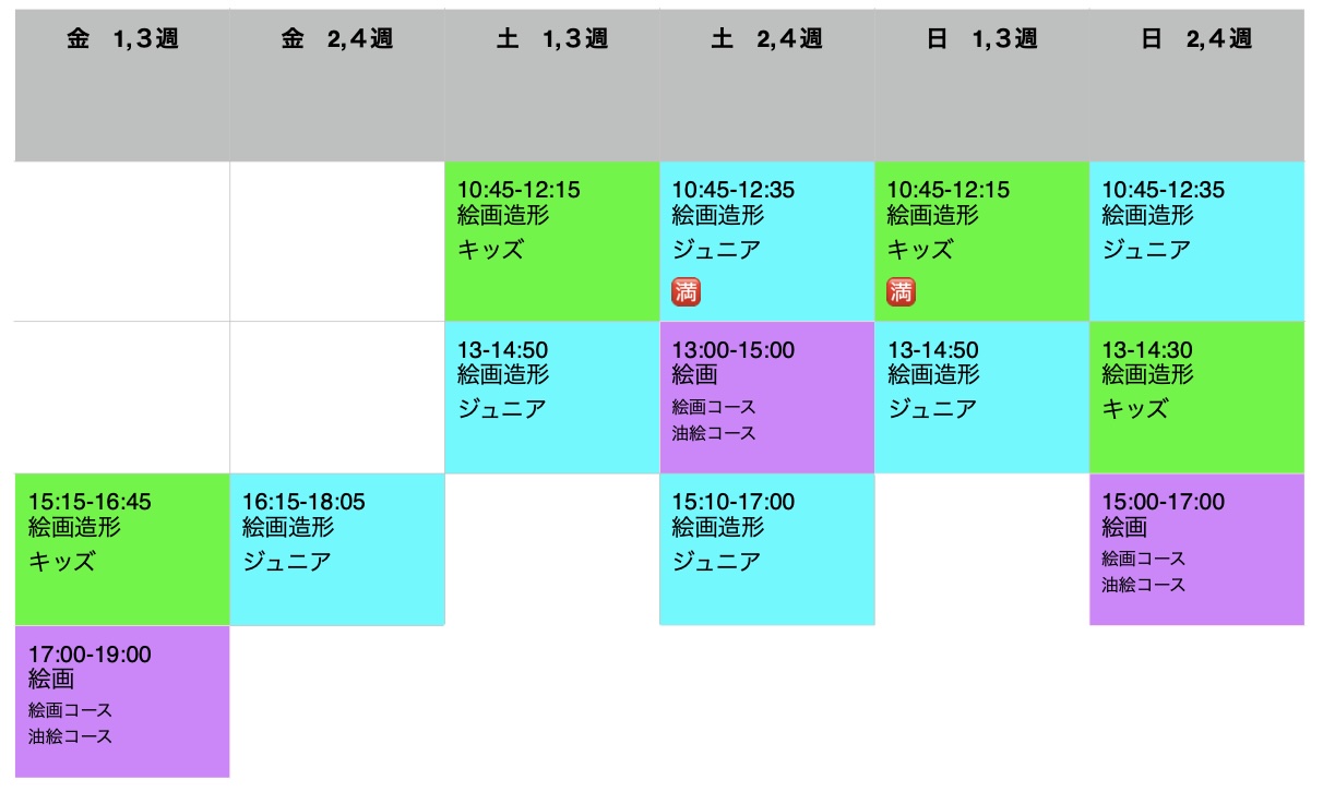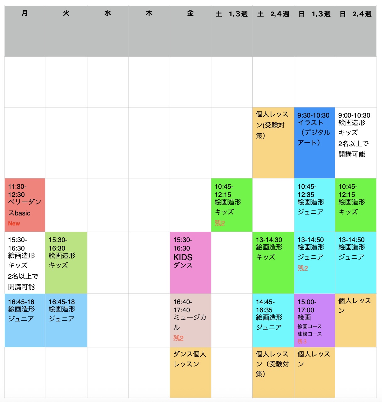 成城校子供クラスは、土日クラスは月2回、平日クラスは月3回のレッスンになります。