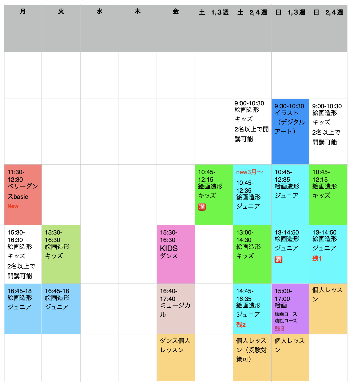 🎨レッスンスケジュール🎨